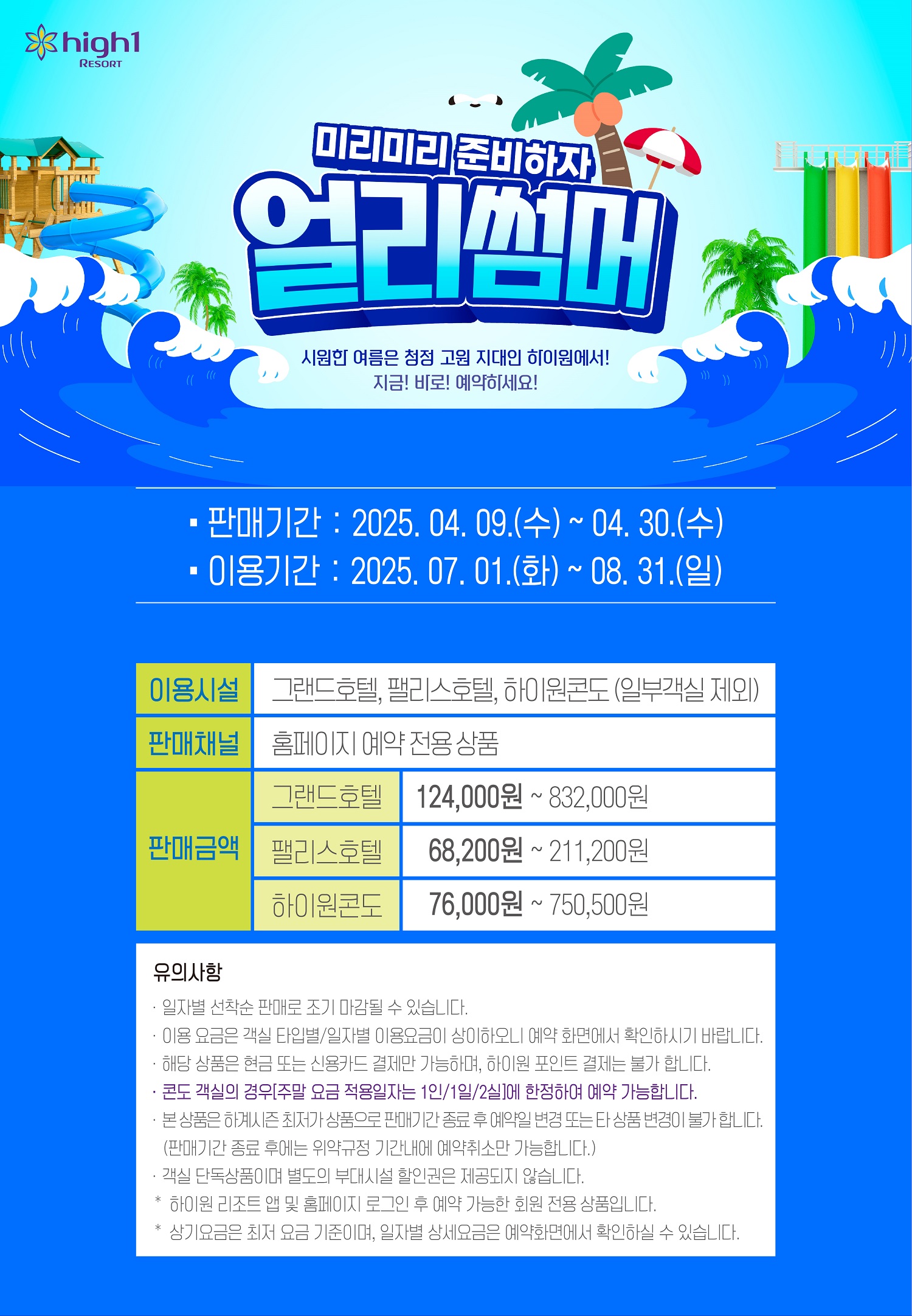 이민호 하이원리조트 마케팅기획실장은 “청정 자연 속 고원에서 무더위를 피해 여유롭고 쾌적한 여름을 보내고자 하는 고객들을 위해 합리적인 가격의 얼리버드 프로모션을 마련했다”며 “워터월드와 다양한 레저, 힐링 프로그램을 통해 프리미엄 여름휴가를 만끽하시길 바란다”고 전했다.