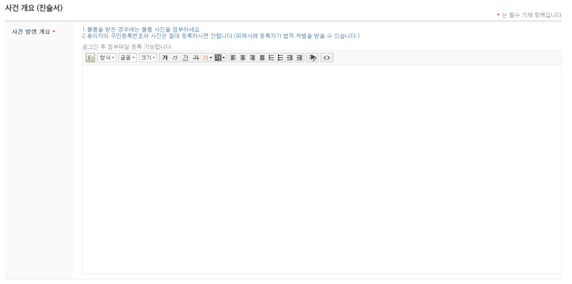 - 피해 내용 입력 + 증거 자료 업로드