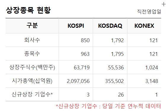 | KOSDAQ150 | 1,154.60 | ▼ -94.40 (-2.22%) | 93,946 |
