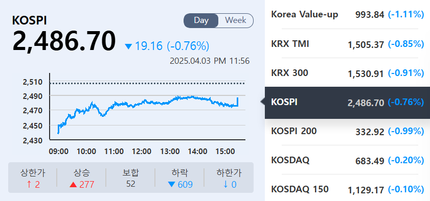 - KOSPI & KOSDAQ, 미국 상호관세 발표 영향으로 2일 연속 하락